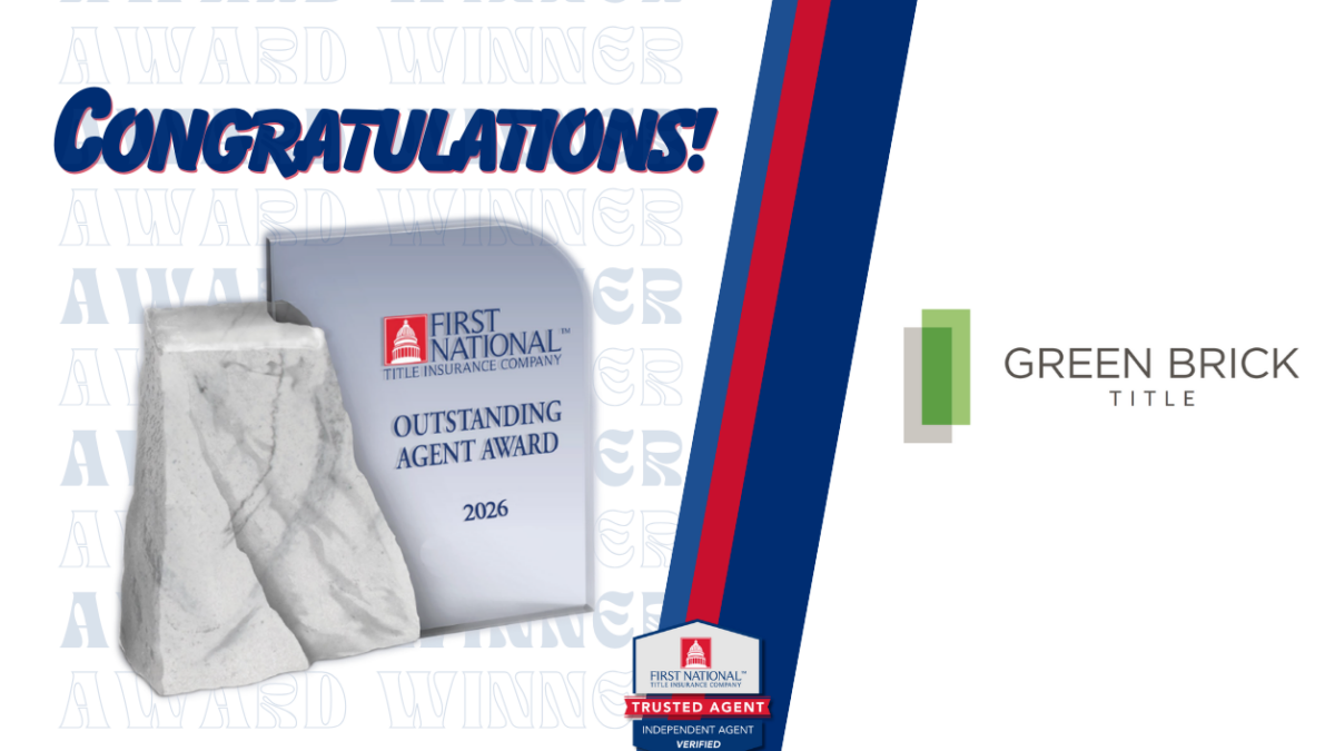 March 17, 2026First National Title Insurance Company is proud to recognize Green Brick Title as one of this year’s Outstanding Agent Award winners during Independent Agents’ Month.